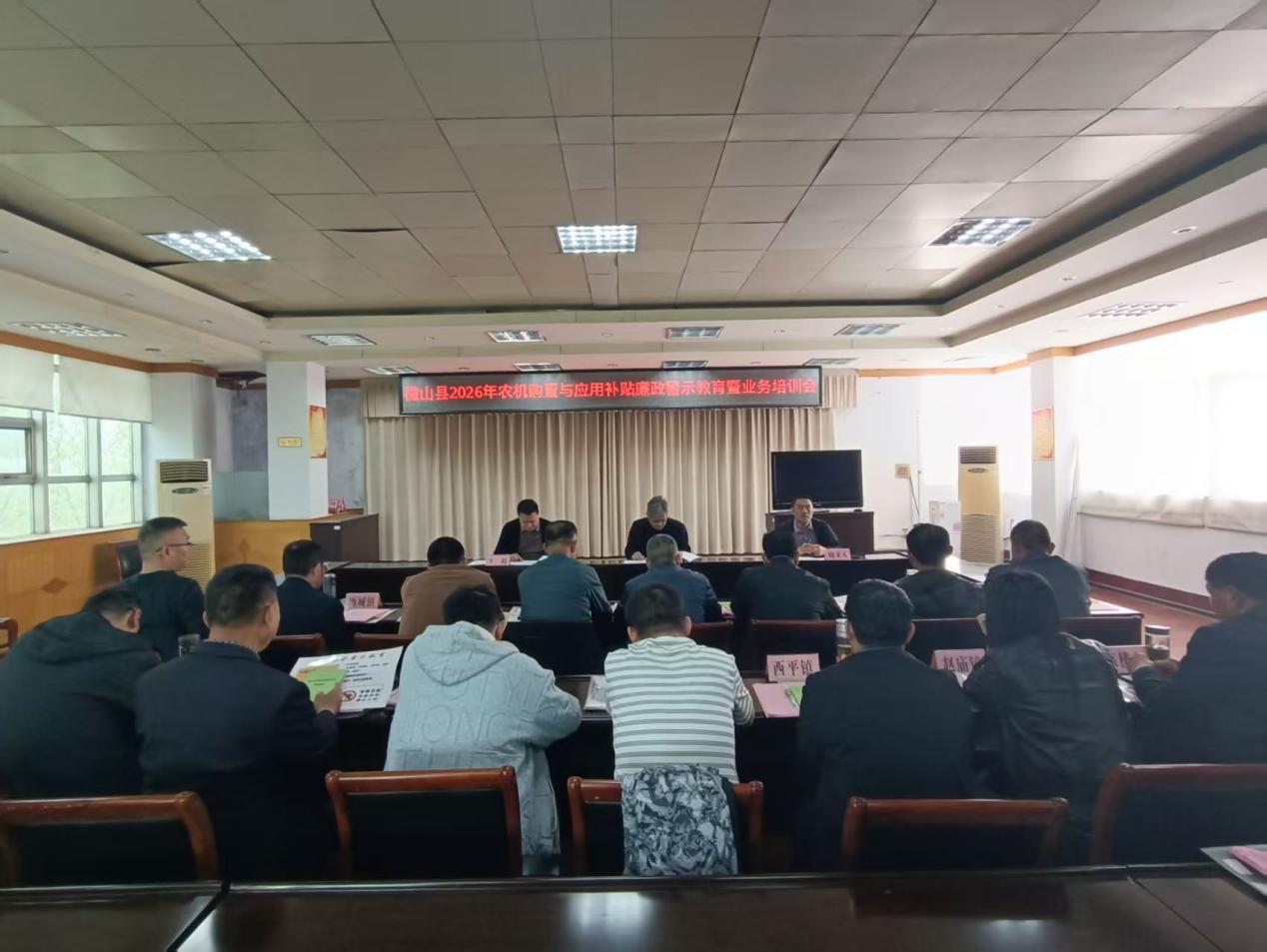 为进一步规范农机购置与应用补贴政策实施,提升全县业务人员履职能力,强化廉政风险防控,4月3日,微山县农机中心开展农机购置与应用补贴廉政警示教育暨业务培训会。县农机中心主任王鸿均出席会议,各乡镇(街道)农机工作负责人、中心全体人员及经销商40余人参加会议。