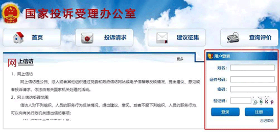 渠道一:国家信访局网站